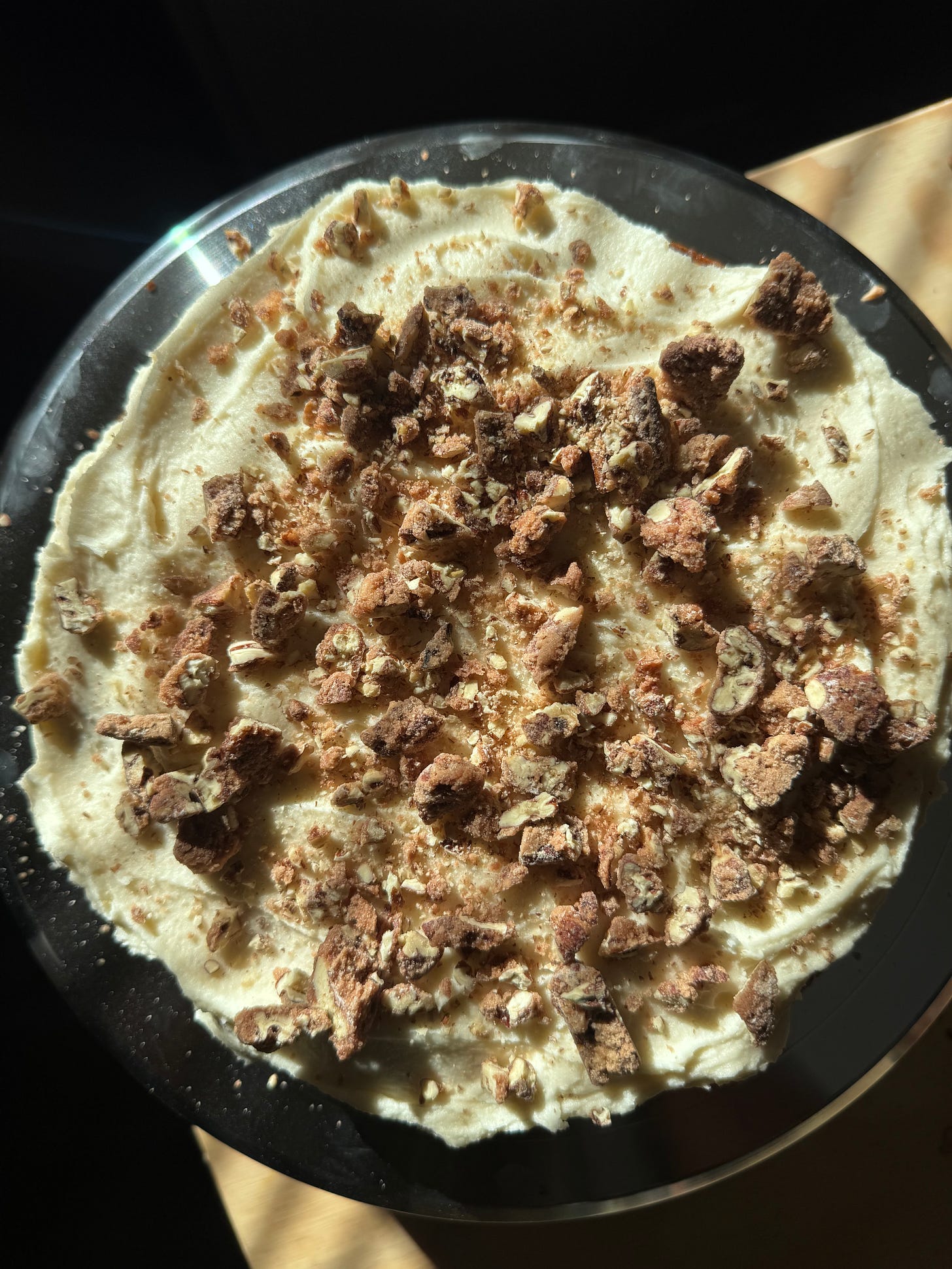 Chop up candied pecans and add to the top of your cake